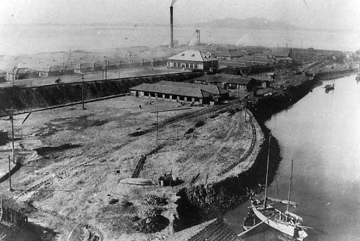 説明 沖ノ山海面埋立地内に開坑。大正3年から竪坑3.斜坑1の開坑に着手。鉱業権者 渡辺 祐策 『本邦工業の超勢』(大正7年)によれば、鉱区面積853,880坪、鉱夫数1135人、鉱産額143,239トン(640,809円)