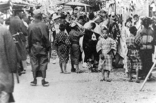| 説明 大正10年(1921)11月1日、厚狭郡宇部村は、山口県宇部市として誕生した。 午前6時になると、市内の各炭鉱、工場、港に停泊している船からサイレンや汽笛、 神社仏閣では釣鐘や太鼓を打ち鳴らすこと3分間。 これを合図に児童・生徒。それに各戸1人以上が打ちそろって琴崎八幡宮に参拝。 7時から市制執行の報告祭が厳かに執行された。 街では花火が打ち上げられ、旗行列が常盤通り、錦橋通り、上町通り、岬通り、三炭町通りなどにつづき、商店街は終日、祭り一色につつまれた。 翌大正12年5月1日から5日までの間「市内各地に執ておのおの思付の出し物、催し物をなして賑わいを添え市中雑踏であり、これはその時の写真。 |