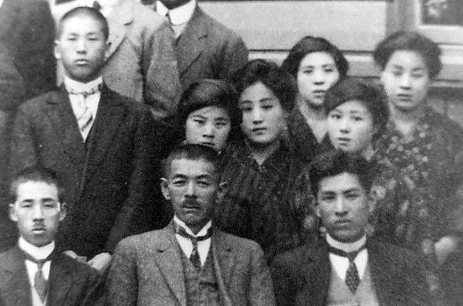 大きな写真の一部だが女性職員はその中でこの5人だけであった。
