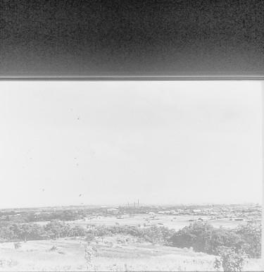 鵜ノ島方面から見た宇部工業地帯。用地の向こうの埋立地に立地した工場が見える。