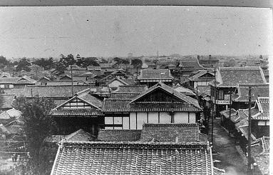 大正10年の市制の施行以後市役所が常盤通りにでき、その周辺の空地に家が建ちはじめた。大正期の宇部市街地の風景。