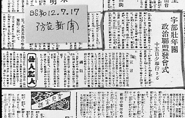日本は日中戦争に突入したため、宇部市では壮年団による政治連盟を発足させ戦争への協力体制の一端を作った。