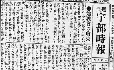 達聰会は明治21年に結成された政治的世論機関であった。 大正6年4月20日渡辺祐策が衆議院議員に再選され、その2日後の4月22日、23日は宇部の村会議員選挙であった。 選挙後の世論の指導的論調を宇部時報は展開している。