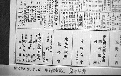 東見初組合長会、書籍商組合、赤崎定介、東見初炭鉱人事係の暑中見舞い広告