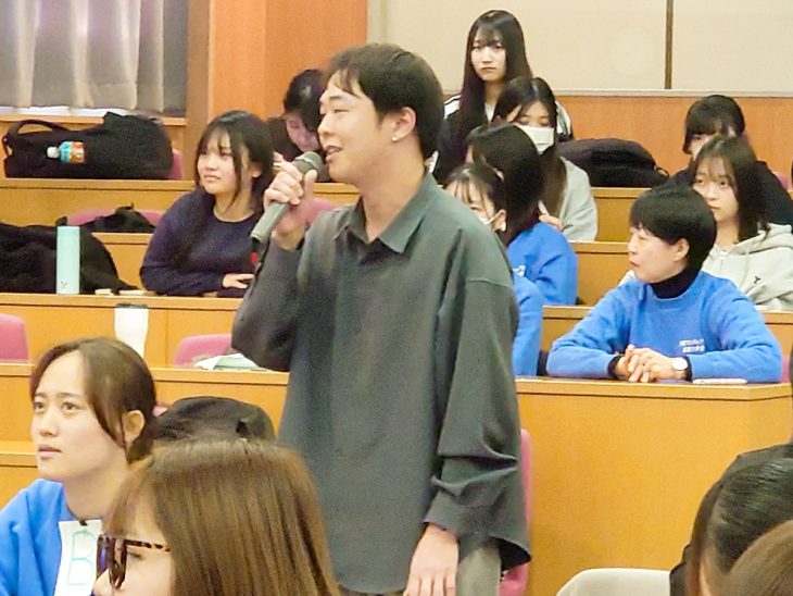 実習を通して気づいたこと学んだことを、2年生が実演を交えてわかりやすく1年生に解説していきます。