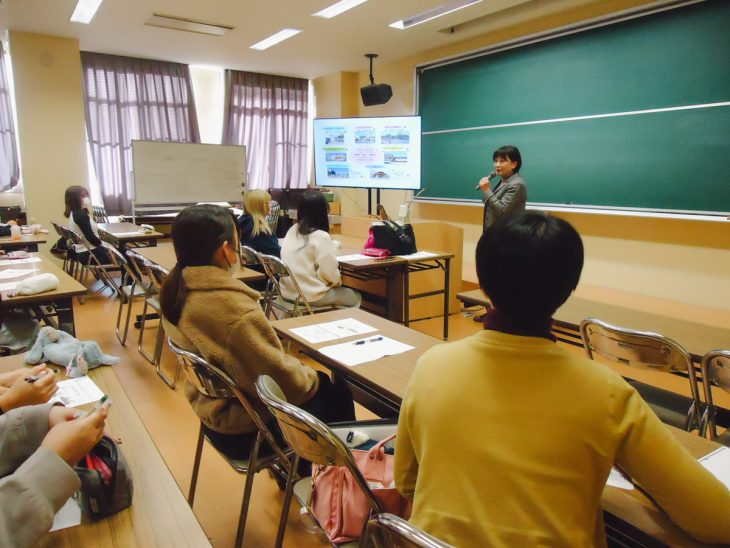 保育学科2年生の保育者としての学びの集大成として、「保育・教職実践演習」の科目の一環として、山口県乳幼児の育ちと学び支援センター 幼児教育アドバイザーの林和子先生より、保育者の「責務」と「倫理」についてご講義いただきました。
